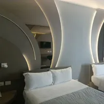 Остановились с парнем на одну ночь, так как летели транзитом в Испанию. Отель был как новый , отремонтированный. Комната была очень большая и просторная, с супер огромной кроватью☺️. Нам практически все понравилось, за исключением ванной. Душ было принять нормально невозможно. Напор горячей воды был очень слабый, если повернуть ручку чтобы смешать с холодной , автоматически лилась холодная вода а не разбавленная. И на двоих взрослых всего лиш 2 маленьких флакона шампуня. Ни тебе отдельно геля для душa. Это было очень большим минусом , тк у меня длинные волосы, и пришлось использовать все два, и парню не хватило принять душ.