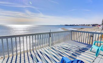 Out the back deck and onto the beach. Enjoy the abundant sandbar and beautiful views as you sit on the upper or lower deck. This house is a 10 minute walk to the park or a 10 minute drive to the town green and restaurants. The house is equipped with all the amenities you will need while at the beach.