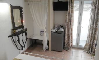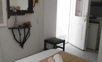 Firstly, I was greeted by the very lovely hosts Aspasia and Manolis who are bursting with information about their island and helpful advice. I loved how much passion they showed and how carefully they have designed their hotel. The rooms having a „cave“ feeling to them and remain cool during the heat of the day. There is no even wall, the entire concept is based on an organic design which made feel very comfortable. The room was equipped with aircon, fridge (including a bottle of water), hairdryer, kettle and a good shower. The cleaning lady was also very nice and I found the entire building in good condition and super clean. Restaurants, supermarkets and ferry port are in walking distance. I really loved staying here and will come back again!