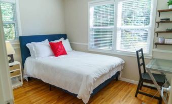 A handy office space is thoughtfully arranged on the lower level, along with a laundry room, and a second bathroom with a shower. High speed internet with WiFi, Smart and cable TV, offering a variety of cable channels. Central heating and AC to keep the room in a comfy temperature year-round. Smoke and CO2 alarms in place for your safety. Step outside to the private deck and patio, the perfect spots to enjoy our yard.About pets:No pets allowed.About checkOut:Check out before 10:00 AM.About children:Children allowed: ages 0-17.About customRules:No party