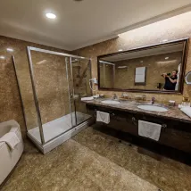 Отель очень понравился. Входишь внутрь и сразу понятно, что тут все солидно. На лобби этаже ресепшен, магазинчики, ресторан, пункт обмена валюты и ресторан. Есть полноценный СПА (бассейн, сауны). Даже обычный номер хорошей квадратуры. Халаты, утюг и доска сразу в номере - не надо требовать.