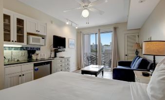 Indulge in the charm of the Market Street Studio—a delightful retreat featuring a queen bed, a comfortable seating area, sleeper sofa, and a convenient kitchenette. Whether you're unwinding after a day of exploration or preparing a quick meal, this studio provides a cozy and versatile space. The thoughtfully designed layout allows you to relax and make the most of your stay in comfort. The kitchenette comes equipped with everything you need for a delightful culinary experience.