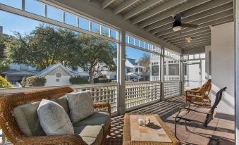 Beach Villa 18 has covered private parking, spacious living room with comfortable seating, dining area, fully equipped kitchen, wrap around screened porch and washer/dryer.