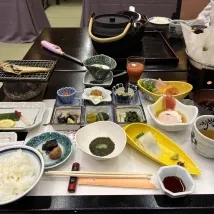 Лучшим отелем с горячими источниками, в котором я останавливался во время шестидневной поездки в Тоттори, был Misasa Onsen ♨️ в Mansui-ro в Кураёси. Мы забронировали пакет на одну ночь с двумя приемами пищи. Онсэн — это уникальный тип горячего источника, содержащий радиоактивный радий ♨️, который, как говорят, излечивает различные заболевания и очень популярен в Японии! Мы забронировали просторный номер в японском стиле в Takachiho, в котором могут разместиться более шести человек! Ужин в отеле был невероятно роскошным и выглядел как произведение искусства! Это было идеальное сочетание визуального и кулинарного наслаждения! Отель также предлагает бесплатный трансфер от/до станции Кураёси!