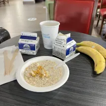 Poor breakfast with nothing healthy. Everything had added sugar. Utensils are useless, can’t ever add cream cheese to the bagel without the knife breaking.