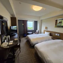 My family and I had a good time staying at Route Inn Grantia Aoshima Taiyokaku. The hotel is located slightly outside the city centre. The room is clean, and the bedding was comfortable. However, it can be a bit strange to some as all guests must remove their footwear and change to the slipper the hotel provided. We have to wear the slipper to anywhere within the hotel facilities. Nevertheless, storage lockers are available for guests footwear.