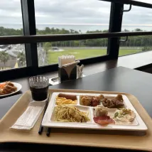 Завтрак был шведский стол. Он находился в ресторане с видом на океан, что было прекрасно! Выбор был невелик, но были холодный мисо-суп и куриный намбан, и их было более чем достаточно для завтрака.