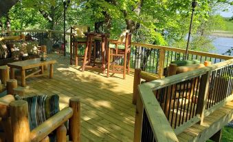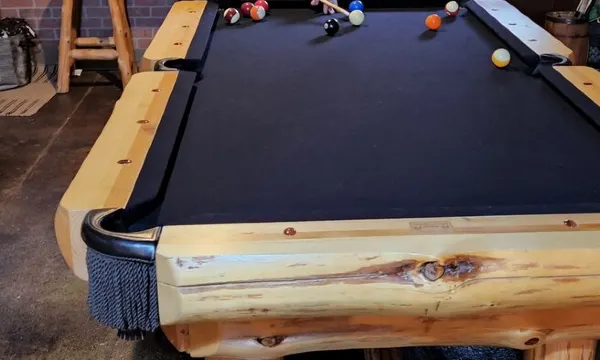 Billiard hall with a beautiful log pool table.