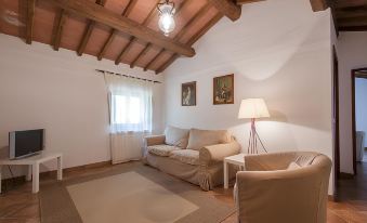 La Fornace Piccola is an apartment inside a renovated sixteenth-century farmhouse, and divided into five apartments; surrounded by nature at 550 meters above sea level, it offers peace and tranquility. Set within an ancient kiln for bricks, La Fornace Piccola is a small and cozy apartment, perfect for couples or a family of four persons, furnished and equipped with Starlink internet connection, satellite TV and wood stove. Guests have free access to the pool without time constraints. A large barbecue is available and the apartment has table and chairs available outdoors, for exclusive use of its guests. You can go fishing in our private lake, rent mountain bikes or simply enjoy a walk in the surrounding woods. You will need a car! The closest town is 6 km away. The paved road is not very well kept, (not our responsibility!) but you can come up with any kind of car, as long as you drive slowly.About pets:Pets allowed: less than 55 lbs per pet (limit one pet total).About checkOut:Check out before 10:00 AM.About children:Children allowed: ages 0-17.About checkIn:Check in after 3:00 PM.About smoking:Smoking is not permitted.About minBookingAge:Minimum age to rent: 18.About events:Events allowed: family gatherings, birthday parties, weddings.Maximum event attendees: 99.
