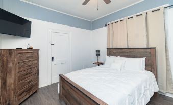 There are two modern, king and queen bedrooms to choose from with quality bedding for a peaceful night’s rest. Both rooms feature a flat-screen TV, closet space, ceiling fan and bedside tables and lamps.