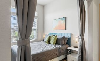 ** Please note that bedroom 2 has a queen-sized bed and was a study space that had been converted into an additional bedroom. Therefore, this bedroom has blackout curtains for privacy separation from the living areas, and has no solid door. Please see listing photos for what the situation and set-up looks like prior to booking to ensure it works for you.