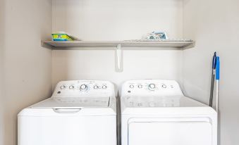 - Fully-equipped kitchen with pots & pans, bakeware, dinnerware, silverware, cookware, blender, toaster, and more!
