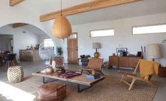 Enter inside this open-plan living area, designed with bohemian desert and modern touches that really make you feel one with the desert experience. Plenty of large windows allows to relish with daylight and views from every part of the home. La Rodinara was intended to disconnect - enjoy a variety of board games, Bocci balls, Vinyl record player and wireless speaker, yoga mats, and a projector with Fire TV / Streaming app.