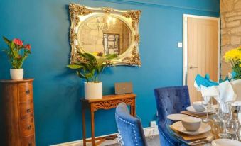 On the ground floor is a large living and dining area with comfy sofa and leather slipper chairs in front of a fabulous log burner. The living area also has a large flat screen smart TV. The gorgeous dining table is the perfect place to enjoy meals in with family and friends. The kitchen is of a very high standard with high-spec appliances, including coffee machine. To the rear of the cottage, is a good sized private, enclosed space with comfortable garden furniture, including egg chair!