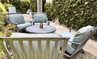 Step outside to your own spacious and private yard, beautifully furnished with outdoor seating, a dining set, a grill, and charming ambient touches—ideal for relaxing or enjoying an alfresco meal. As you sit outside, you’ll often hear the gentle whisper of the ocean and the cheerful songs of birds, creating a peaceful and serene environment. At night, the yard transforms into a cozy retreat with soft night lighting and fully illuminated pathways for both atmosphere and convenience. While this property does not offer an ocean view, you can see the ocean from the entrance and as soon as you exit your main gate, and at several points while you walk around the neighborhood. An additional two lounge chairs are thoughtfully placed on a peaceful corner of the yard, on top, perfect for catching glimpses of the sea and enjoying the fresh coastal air.
