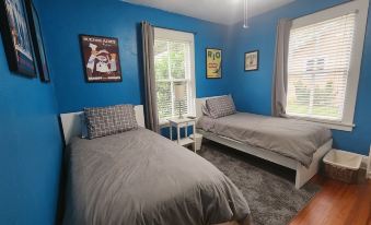 The home was built in 1927. When you walk into the house, you'll be greeted by the living room. There is seating for four people with two love seats across from each other. The room includes a Smart TV with a Blu-Ray DVD player. Feel free to log in to your favorite streaming service and enjoy your shows! Please note that I do not have any TV service. There is a fireplace but it does not work and cannot be used.