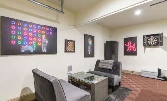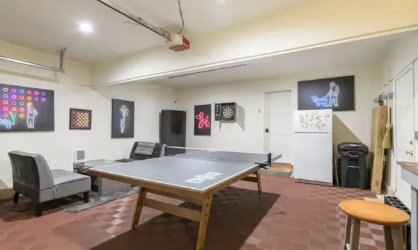 The bedrooms feature: Master with king size bed, walk in closet and plenty of room; Queen bedroom with full size closet; Twin bedroom with pull out trundle. Chefs kitchen with all you need for the perfect meal. Heated Garage Gameroom with Ping Pong, Foosball, Darts and Chess. Roku Smart TV's in the Living room and Master. Hot Tub, Fire Pit, in the fully fenced backyard.