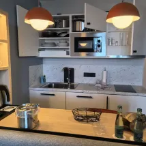 Отель очень чистый и расположен в 3 остановках метро от площади Мариенплац в центре города. До него можно добраться на разных станциях метро примерно за 8 минут. Можно тащить с собой багаж. В номере есть небольшая кухня со всей необходимой посудой, рядом супермаркет.