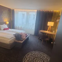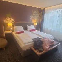 Расположение удобное, в 6 или 7 минутах от центрального вокзала Мюнхена.Есть много вариантов завтрака, вкус хороший.В номере есть бесплатный мини-бар, и нам повысили категорию номера до двухуровневого люкса.