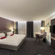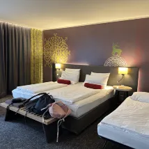В нескольких минутах ходьбы от центрального вокзала Мюнхена, откуда легко добраться куда угодно. Регистрация прошла быстро, размер номера меня устраивает, есть сейф с цифровым замком, фен и многое другое. Бесплатный мини-бар - это плюс-плюс.