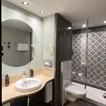 Расположение хорошее, транспорт удобный, обслуживание персонала неплохое, есть бесплатный мини-бар, но с одним душем это не очень приемлемо. Я попросил сотрудников отеля прийти и посмотреть. Они сказали, что проблем нет, но я действительно не мог смириться с черными пятнами плесени посередине.