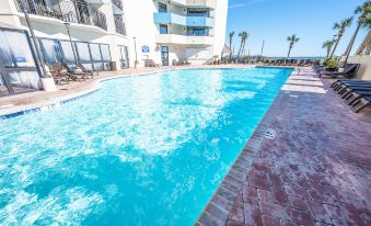 This beachfront resort offers a wealth of amenities, including indoor and outdoor whirlpools, a lazy river, a spacious pool deck, and welcoming social areas. The indoor pool features hot tubs with stunning ocean views. Stay active in the fitness room, relax in the lounge, and enjoy onsite dining. And don't forget – we provide free Wi-Fi for your added convenience!