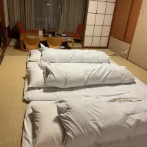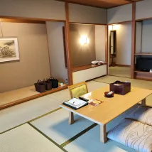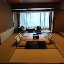 Номер в японском стиле, который я забронировал в главном отеле, подходит для двоих. Особенность отеля в том, что он находится на острове. Чтобы добраться туда и обратно, нужна лодка, а также есть микроавтобус (из-за проблем с английским на стойке регистрации я не понимал до последнего дня). что время на автобусе и лодка могут дополнять друг друга). Особенность горячих источников в том, что есть два пещерных горячих источника, с которых открывается прямой вид на Тихий океан. Кроме того, есть эскалатор, чтобы посмотреть на вершину горы. восход и закат или насладиться видом на горы и море. Может быть, это потому, что на завтраке очень много людей. В отель приезжает много местных на отдых. Качество среднее и немного неряшливое (в Японии не вкусно).