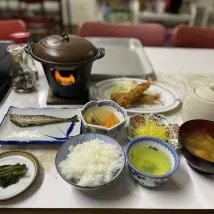 Если у хозяина есть время, он может приготовить ужин даже после ужина. Можно выбрать только одно блюдо: рис карри или рис с говядиной на гриле, стоимость составляет 1100 иен с человека.