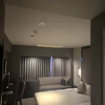 Я увидел, что в разделе комментариев были хорошие отзывы об отеле, а также уровень заполняемости был высоким. Мы не можем забронировать два номера. Наконец-то мне удалось зарегистрироваться на третью ночь в Нагое. Я приехал сюда с большими ожиданиями. Вам придется подняться на эскалаторе в вестибюль. Он небольшой, но чистый, а администратор очень вежливый. Площадь комнаты составляет более 200 квадратных футов, что не так уж и мало, но отделка явно немного устарела, а в ванную комнату можно попасть, только поднявшись по ступенькам. Стоимость номера за ночь была невысокой, но планировка номера немного разочаровала.