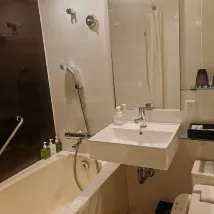Хороший отель. До метро довольно далеко. Рядом находится много торговых центров. Сам номер большой, но интерьер тёмный. В ванне есть небольшой запах сырости.