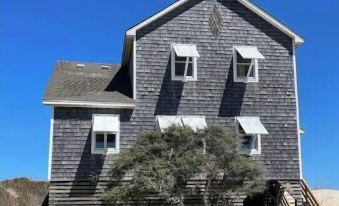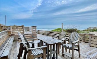 This beautiful home is on a wonderful, uncrowded stretch of beach. Comfortable, bright, with a classic Outer Banks feel. You'll find three bedrooms and two bathrooms on the first floor (1 kind bedroom, 1 queen bedroom, and 1 bedroom with two twins). The 2nd floor has a master suite with king size bed, full bathroom and oceanfront balcony, and another bedroom with a queen bed and 1/2 bath.