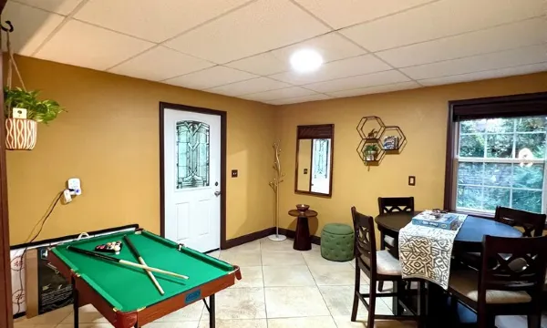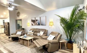 • Living Room: Cozy couch and two reclining chairs, perfect for relaxing in front of the 75” smart TV.