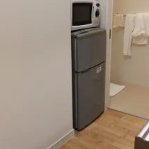 Чистота, расположение и обслуживание отличные. Было бы ещё лучше, если бы предоставлялось больше столовых приборов, таких как тарелки, ложки и вилки. Решетка кондиционера сломана, и мне пришлось использовать ручку, чтобы её удержать.