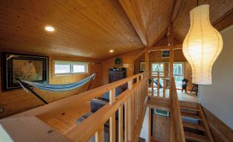 自助入住. 鄰近森林公園, 下午到埗聽到似是棕熊叫聲, 我們都不敢外出泡溫泉. 雖然有4張大床但只得2房, 私隱不夠. 樓上大廳有梳化床但旁邊被鋪有血漬不敢用. 但整體ok