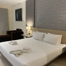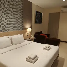 Гостиница расположена не далеко от центра в тихом переулке. Рядом много кафе с едой. Заселение прошло быстро. Депозит не требуется за ключи. Номер был чистым и просторным. Кровать широкая, удобная, но жёсткая. Кондиционер не удачно расположен и дует на кровать. Завтрак шведский стол с 7 до 10 утра. Есть суп, рис, лапша, рыба, курица, яйцо жаренное. Омлет не делают. Из фруктов был арбуз. Есть тосты, джем, масло. Есть чай, кофе, сок, вода. Рекомендуем этот отель.