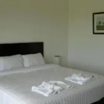 Удобная транспортная развязка, есть парковка и удобные ступеньки для проживания. Атмосфера в номере простая и комфортная. Кровать, полотенца, одеяла выглядят чистыми и приятными в использовании. Обстановка в номере напоминает отдых в саду.