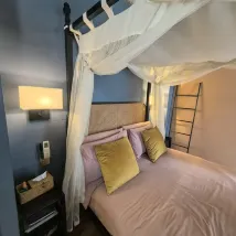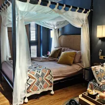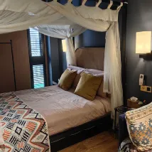 果然是非常高評分的店,真的超級非常滿意的入住體驗。位置上雖然在小巷裡,但是非常好找的一棟,一進門就能感受到老闆非常用心的裝修和裝飾,很有特色,很有設計美感。還有幾衹很乖的咪咪。再到房間內的裝修也是,各個方面的細節和小提示,提前打開房間空調,還有加濕器,整個空間香香的,老闆品味非常好,選這個香聞起來非常舒服。包括播放鳥叫的聲音,非常舒服。老闆服務非常好也很細節。非常推薦的一家店。