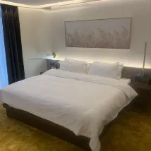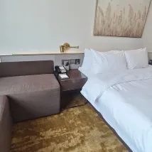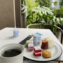 Отель расположен в парке, и найти его непросто, но сразу после входа атмосфера очень приятная. Здесь очень тихо. У входа есть баскетбольная площадка. Кафе на первом этаже очень красивое, а цветы – отличное место для фотосессий. В номере чисто и аккуратно. Обслуживающий персонал очень энергичный. Есть роботы для доставки еды на вынос, что очень удобно. Есть станции быстрой зарядки, поэтому не нужно беспокоиться о трамваях. На завтрак есть всё необходимое, но мест мало. В целом, всё хорошо, и я приеду ещё, если будет возможность.