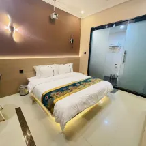 Девушка на стойке регистрации отеля была очень мила! Бесплатное повышение категории до более просторного номера. Квартира очень красивая, чистая и опрятная. Также есть проектор, который можно использовать для просмотра дорам и фильмов. Очень важно иметь сенсорный свет, когда вы просыпаетесь ночью. Туалет также очень чистый и опрятный. не имеет запаха, я очень рекомендую всем остановиться здесь.