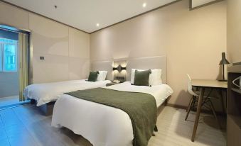 房間不大,本來190不加早餐就可以了,想到出去吃不方便,兩個人➕了兩份早餐231相當於多付了40元,早餐也是一言難盡,全是素的,難吃的要命,晚上睡覺時身上還癢,被子不知道有沒有洗乾淨,放衣服的簍子還有毛髮,洗手的地方🈶臟。隔音也是不好的,隔壁説話聽的一清二楚,臨近馬路,車來車往也挺吵,上廁所的地方與牆壁太近很不方便,還要爬樓梯,除了離地鐵站近點幾乎沒有什麼優點了,下次不會在選擇這家酒店,很差勁👎🏻。