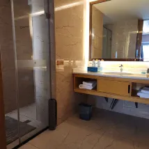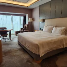 Отель был очень чистым и комфортным. Номер был большим. Сантехника была марки Toto и в хорошем состоянии. Обслуживание было в целом хорошим. Завтрак состоял из разнообразных блюд китайской кухни с некоторыми ежедневными изменениями. Бассейн был закрыт без предупреждения. Вид из отеля был хорошим! Как показано на фотографиях. Также был ежедневный комплимент от отеля в виде полдника.
