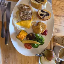 Breakfast cooked by the hotel was delicious. Service was good and clean. Felt safe staying there too.