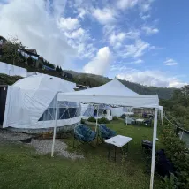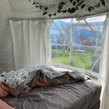 We had amazing time staying at the place. Super cute dog and cat were our cuddle buddy for rainny nights. View from the tent is 10/10. price is so reasonable.