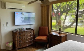 The much coveted ground floor, one level, 2 bedroom - 2 bathroom floor plan at Papakea. No steps! Also, brand new ductless air conditioning system in both bedrooms and living room / kitchen area. An amenity not all of the condos have! AND PAPAKEA IS NOW A NO FEE RESORT!! NO DAILY FEES LIKE SOME OTHER RESORTS. Enjoy the beautiful setting with a Koi pond directly off your patio. Just steps to the ocean, pool, hot tub, bbq area, lighted tennis courts, pickle ball, shuffleboard, putting greens and all the great amenities that Papakea Resort has to offer. Located between Kapalua and Kaanapali, you are just minutes away from 72 holes of world class golf, restaurants, shops and famous Lahaina Town. Papakea is a 13 acre tropical oceanfront resort with the true aloha feeling of Maui. Also is known as one of the largest land areas with fewest number of units on any resort in Kaanapali. Papakea Resort is located at North Ka'aanapli Beach and features acres of lush landscaped grounds, fresh water koi ponds, 2 salt water swimming pools, 2 large spas, 12 gas BBQ's, 2 putting greens, 2 shuffleboard courts and 2 lit tennis courts, complimentary concierge services and a 24-hour front desk with plenty of open parking. The condo is located within walking distance to restaurants, grocery store, farmer's market, snorkel gear rental shop, gift shops and an oceanside park. Each evening, tiki torches light up the property for an exquisite Hawaiian tropical ambiance. Enjoy swimming, snorkeling, turtle spotting, boogie boarding, paddle boarding, and whale watching (during whale season) from this ultimate Maui property. Our condo has a fully stocked kitchen for your dining in and cooking pleasure. For your entertainment we have a 65 inch tv waiting for you in the living room and a 55 inch tv in the master. A comfy king size bed in the master and 2 twins in the 2nd bedroom, that can be converted to a king upon request. Also, the couch in the living area can be converted into a queen. For you convenience, a washer and dryer is also in the condo. The resort also offers several free exercise classes, once a week Mai Tai and Hawaiian music gathering as well as a putting tournament. We stock you with starter supplies of all the basics to help get you going for your stay. Also, beach towels and beach chairs are available for your use. The kitchen is fully equipped with dishes, cooking utensils, dishwasher, refrigerator, oven, microwave, coffee maker and Kuerig. Because the Papakea Resort being directly ocean front, beach access is sometimes not available, due to the changing season and tides. However, there are beach parks and large beaches up and down the coast just a short walk or drive. This is a recently purchased property so we apologize for not having many reviews, however you my look us up on one of our other properties, VRBO 173345 to check out some reviews and how well we treat our guests!About pets:No pets allowed.About checkOut:Check out before 11:00 AM.About children:Children allowed: ages 0-17.About customRules:If you could give us your best guess on your arrival time to the condo and if you'll be departing much sooner then the 11am checkout time. Thank you!.About checkIn:Check in after 4:00 PM.About smoking:Smoking is not permitted.About minBookingAge:Minimum age to rent: 25.About events:No events allowed.