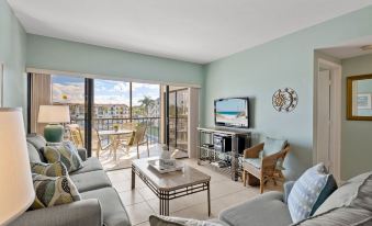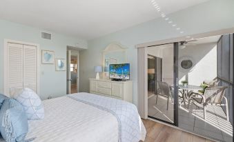 This stylish condo boasts a master bedroom overlooking the harbor with doors to a lanai to enjoy the Florida breeze off the water. This master bedroom has a king-size bed, TV, dresser and walk-in closet. The second bedroom offers two single beds, desk, dresser and closet for plenty of storage. The first bathroom includes a bath/shower. The second bath is off the second bedroom and is a powder room.
