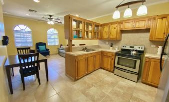 This property was perfect for my husband and I. Bedroom is a great size, and the unit was spacious. Having a washer and dryer is super convenient. Only real downfall for us was that there was no laundry detergent or dryer sheets, plus only two rolls of TP for an 8 night stay. The pool is quite nice with table and chairs, but no lay out chairs (if you're into that). Communication with Dion was great, with very good directions to find the property, keyless entry is a bonus so no potential loss of keys. We really liked the location.