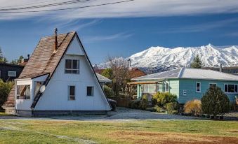 A retro A-frame house in the quaint "National Park Village". The village is surrounded by two World Heritage listed National Parks and is the gateway to the Central Plateau area and the dual World Heritage listed Tongariro National Park.