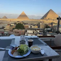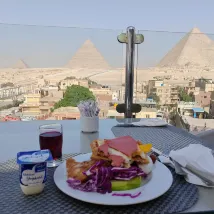 Завтрак был скудным, но вид из окна был потрясающим – панорамный вид на пирамиды. В номере не было фена. Простыни и одеяло были неудобными и потёртыми. Однако кондиционер работал нормально. Расположение очень удобное, рядом с пирамидами и Сфинксом.
