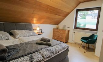 Wir waren vom 28.12.-02.01.2024 in der Gästewohnung, welche sehr sauber, gepflegt und mit liebe renoviert und dekoriert ist. Gleich am Anfang wurden wir auf den Betten von Nikoläusen und Gummibärchen überrascht. Der Pool und die Sauna bieten Entspannung und sind ein absolutes Highlight dieser Ferienwohnung. Kevin ist absolut zuverlässig,freundlich, hilfsbereit und hat super Tipps für die Umgebung und Events. Es hat uns allen sehr gut gefallen, auch die kleine Tochter (knapp über zwei Jahre) hatte sehr viel Spaß und konnte sich im Pool austoben. Wir kommen gerne wieder um noch mehr von der schönen Umgebung anzusehen und hier nochmal entspannen zu können. Wir danken euch für die tolle Zeit. Liebe Grüße S/M/A/C/C