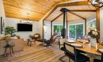 Newly renovated with mid-century modern flair, this 4-bedroom retreat blends comfort and style with fun for all ages. Just 0.4 miles from the slopes of Wintergreen Resort, it’s the perfect base for skiing, hiking, or relaxing year-round in the Blue Ridge Mountains.